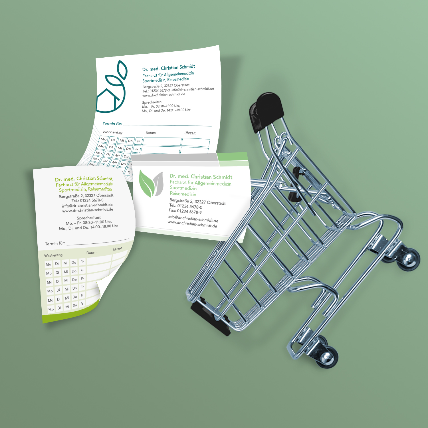 Praxisdrucksachen für einen geordneten Praxisalltag: Privatrezepte, Formulare, Adressfeldetiketten, Praxisflyer, Briefbogen und mehr.