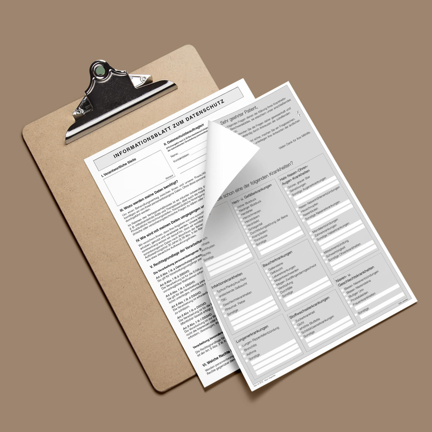 Bestellen Sie noch heute Ihre Praxisformulare online und statten Sie Ihre Praxis mit hochwertigen, maßgeschneiderten Vordrucken aus.