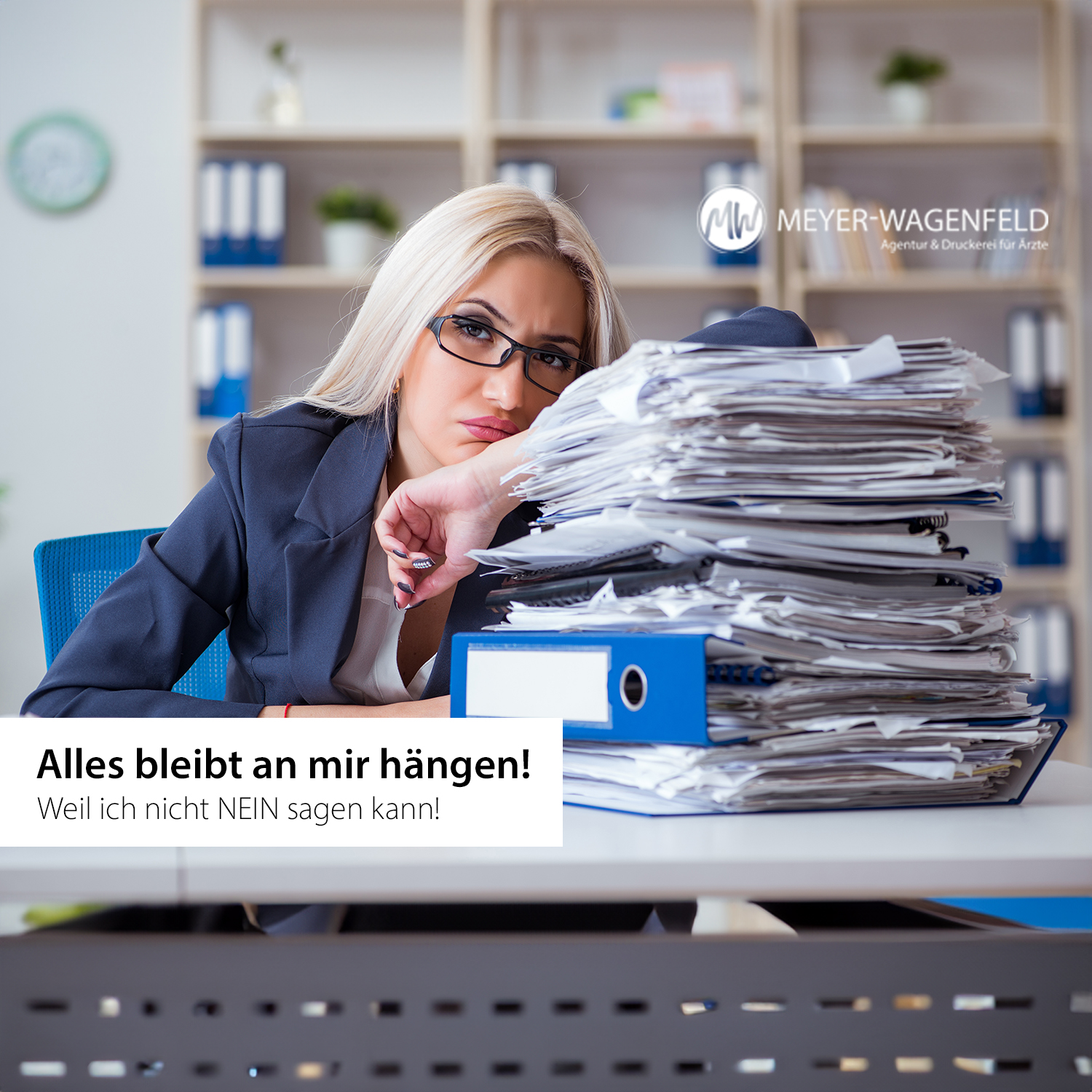 Das „Baden in Selbstmitleid“ bringt Sie kein Stück weiter. Natürlich tut es gut, anderen zu erzählen, dass man bis zum Hals in Arbeit steckt und nicht weiß, was man zuerst oder zuletzt machen soll. Das löst aber nicht Ihr Problem. Viel wichtiger ist es, dass Sie lernen, sich abzugrenzen und NEIN zu sagen!