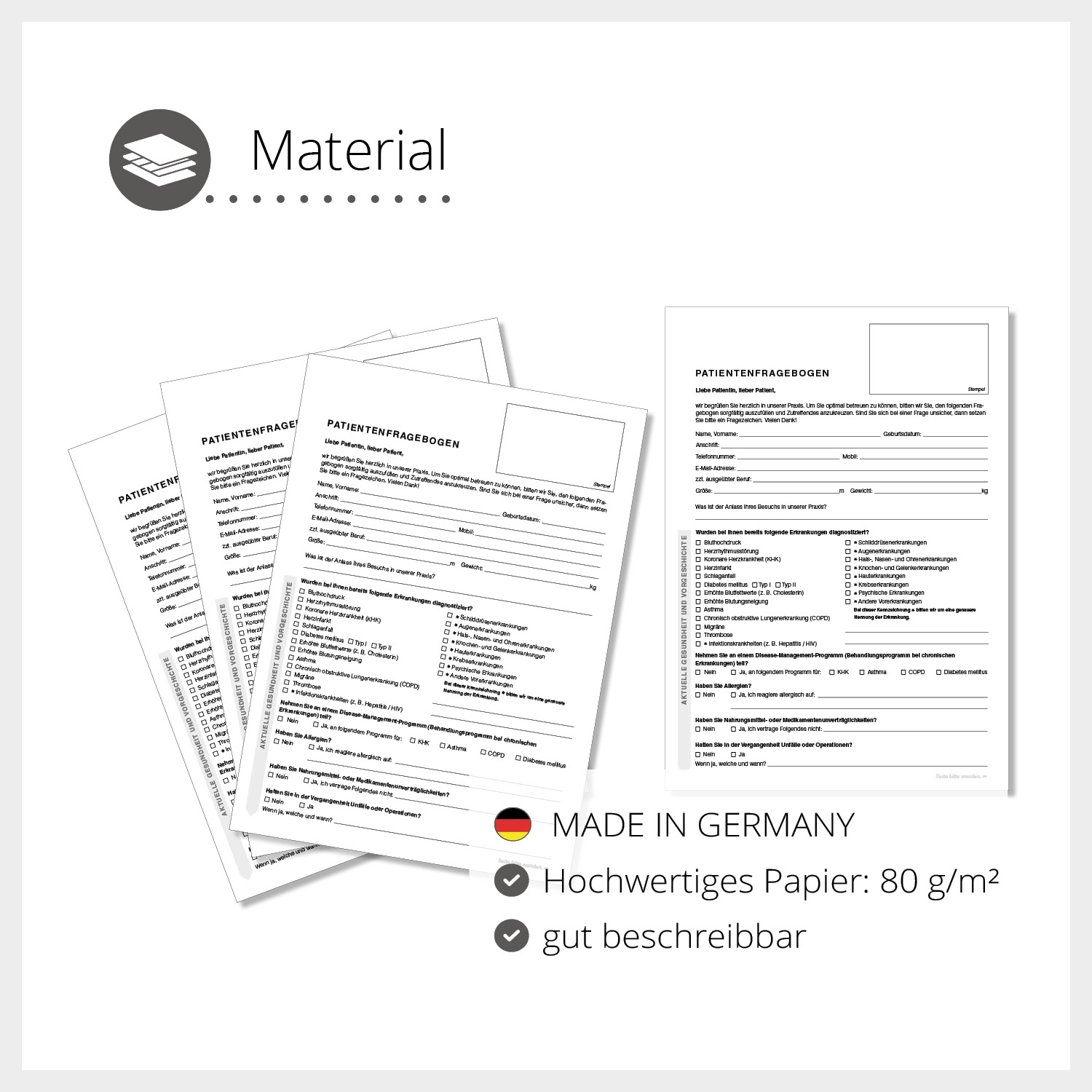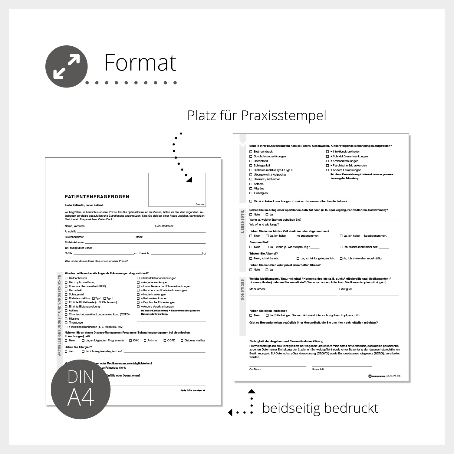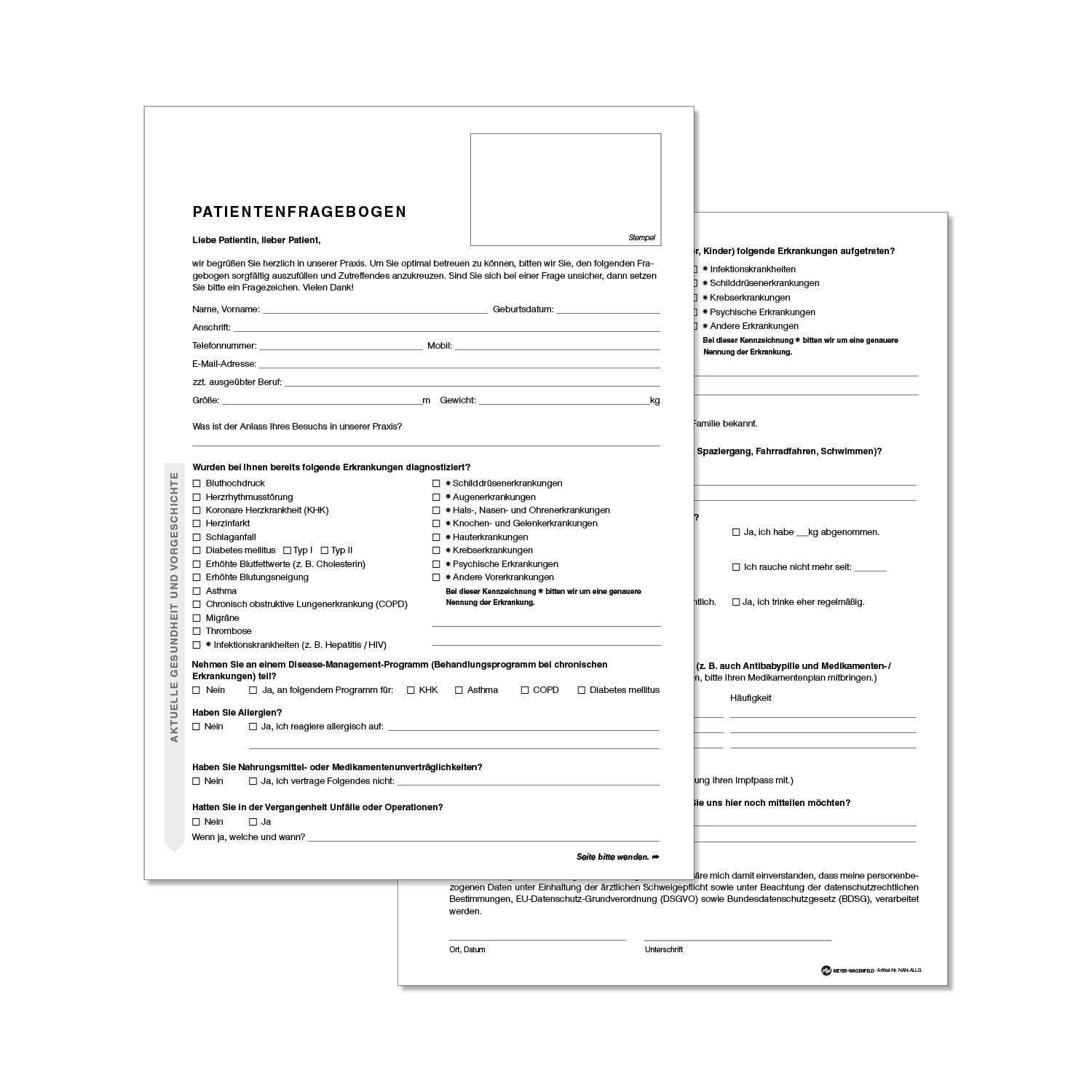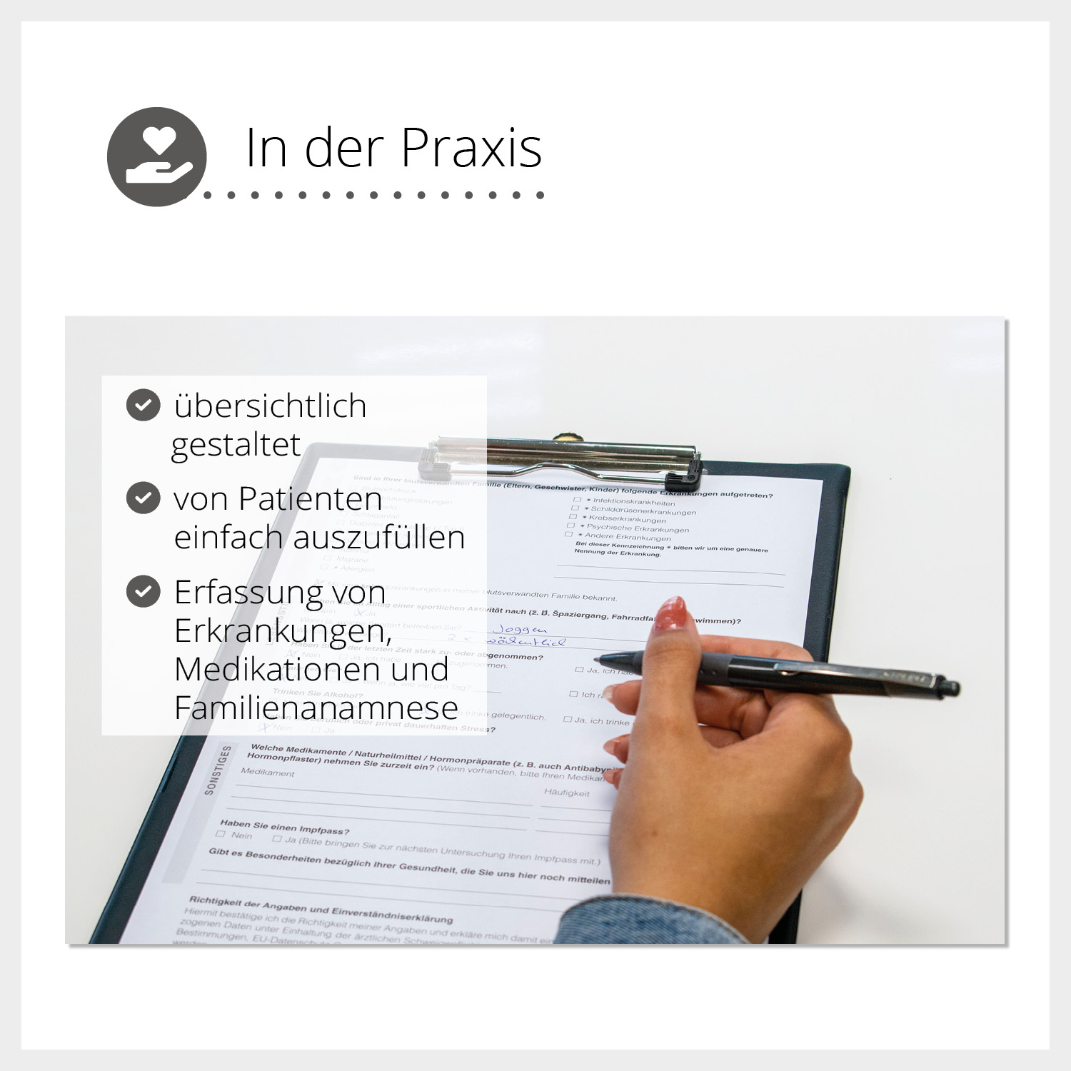Krankheiten, Medikationen und der Familienanamnese. Inkl. Einverständniserklärung nach DSGVO.
