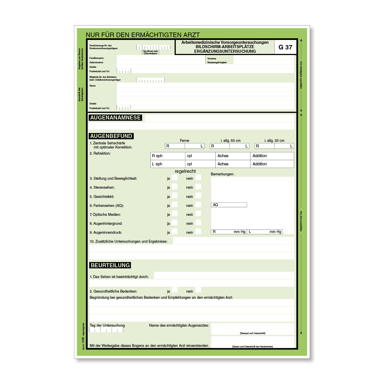 G37 Ergänzungsuntersuchung | Arbeitsmedizinische Vorsorgeuntersuchung
