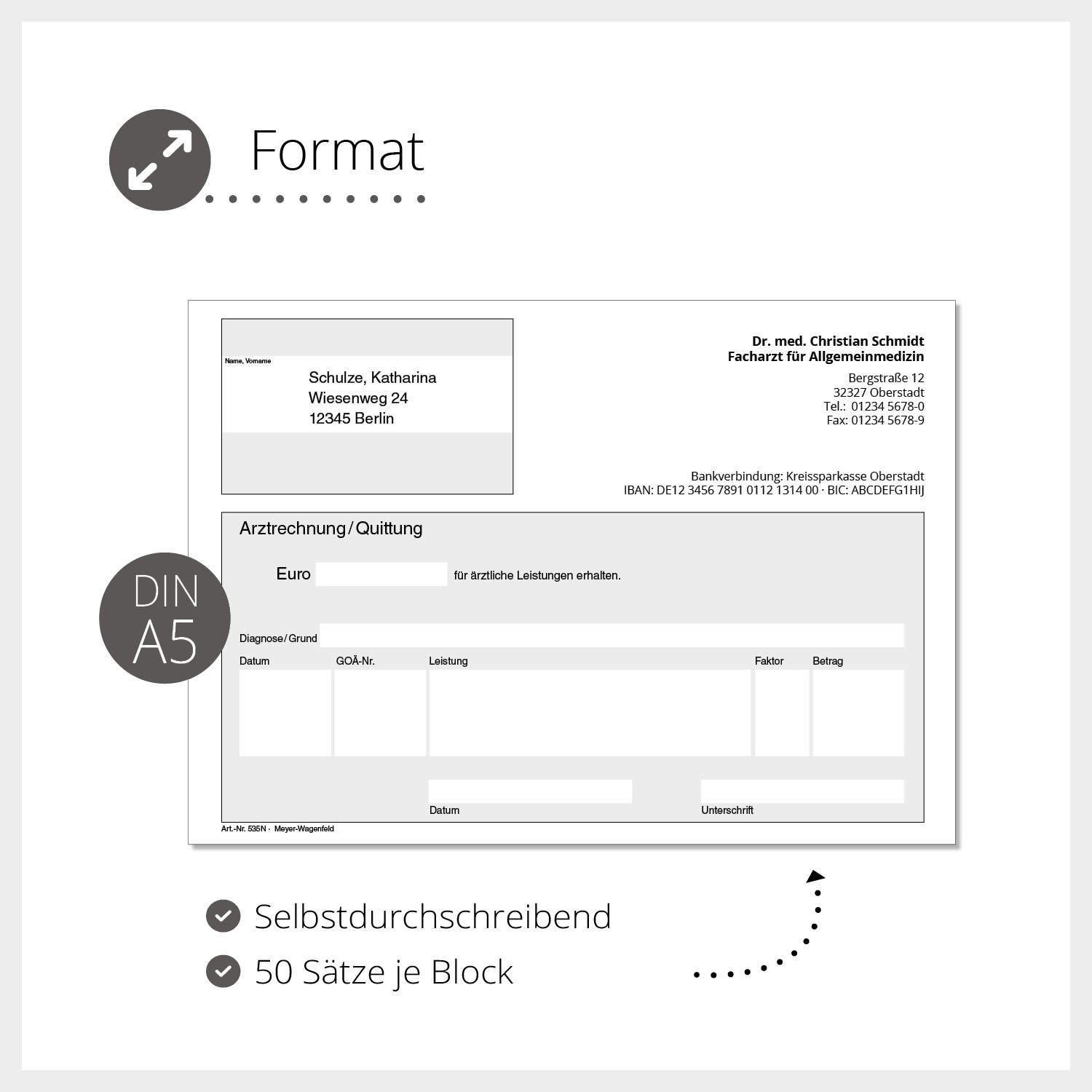 Die Arztrechnungen/Quittungen sind zu je 50 Satz geblockt und oben an der langen Seite verleimt. Deshalb lassen sich diese Blöcke auch unterwegs gut nutzen.