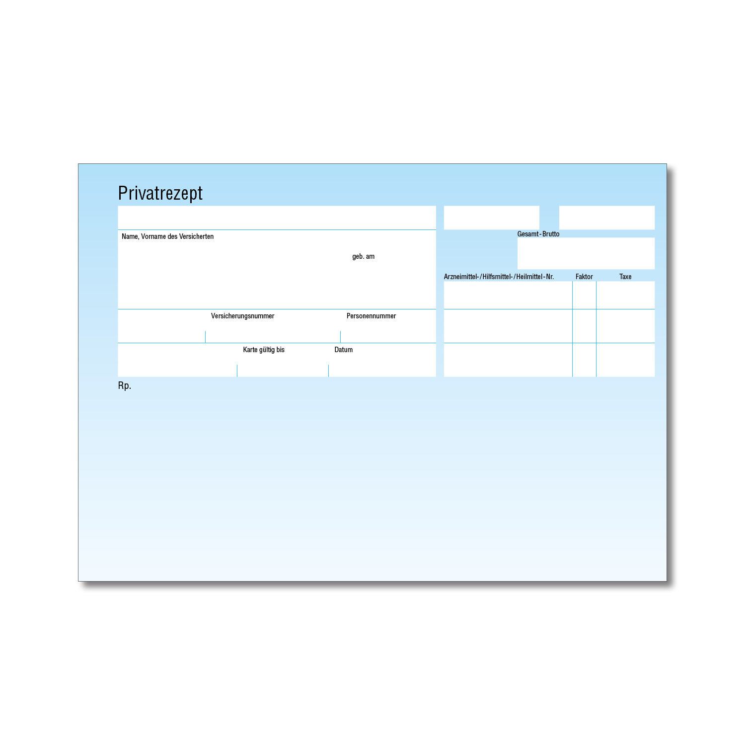Das blaue Privatrezept im Querformat lässt sich einfach beschriften und mit allen handelsüblichen Druckern bedrucken.