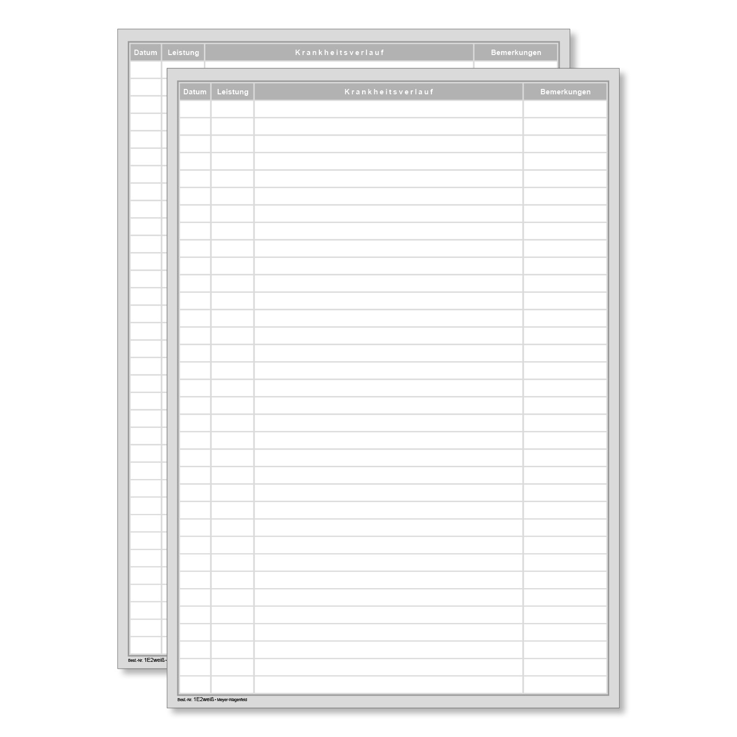Der 4-spaltige Einlegebogen 1E2 im Format DIN A4 ist mit allen Patientenkarteikarten aus unserem Sortiment kombinierbar und auf das Format DIN A5 faltbar. Das Einlegeblatt verfügt über vier bereits beschriftete Spalten (Datum, Leistung, Krankheitsverlauf, Bemerkungen). Die Schreibfläche der Karteikarten lässt sich mit Hilfe der zweiseitig bedruckten Einlegebogen beliebig erweitern.