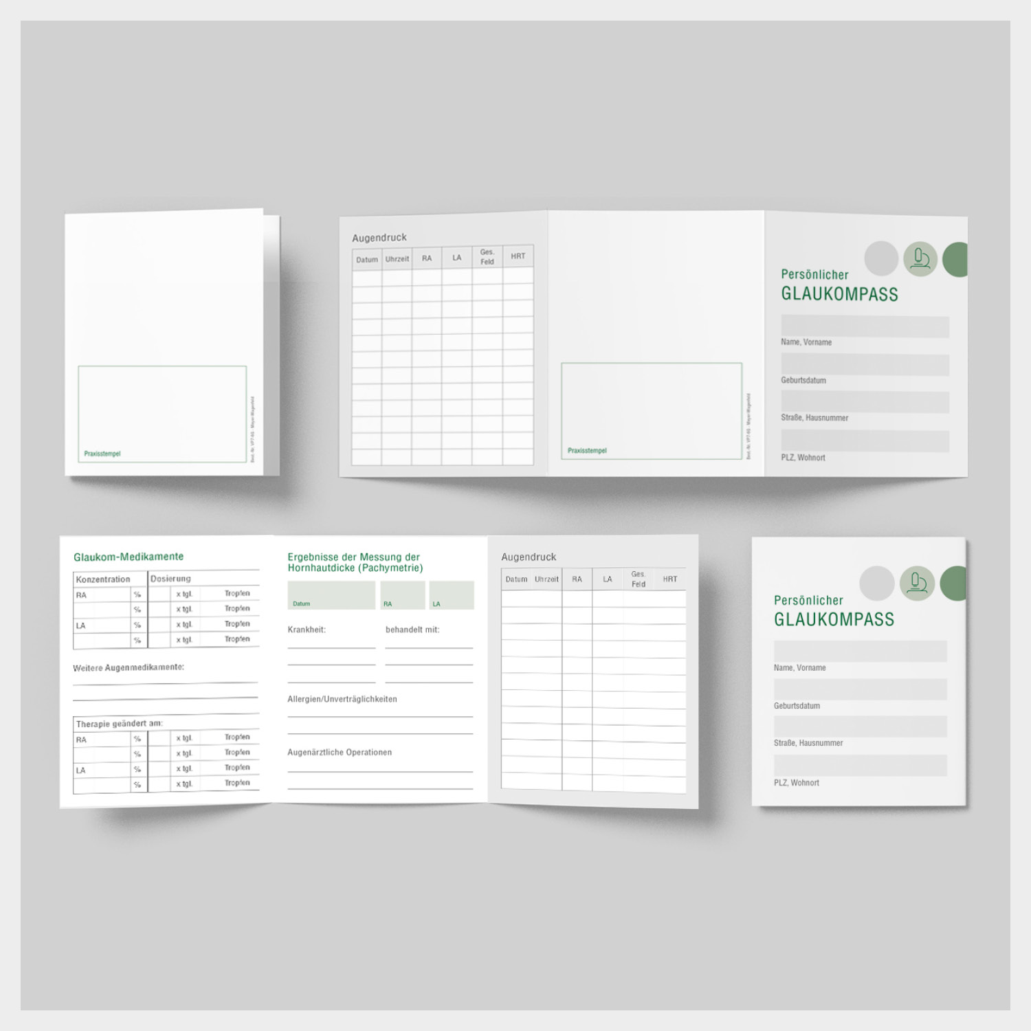 Der Glaukompass hilft Arzt und Patienten dabei, einen schnellen Überblick über den Krankheitsverlauf zu erhalten. Veränderungen des Augeninnendrucks, Medikamentengaben, Therapien sowie weitere wichtige Angaben zu Unverträglichkeiten und augenärztlichen Operationen können dokumentiert werden und geben so einen umfassenden Eindruck über den augenärztlichen Gesundheitszustand des Patienten.
