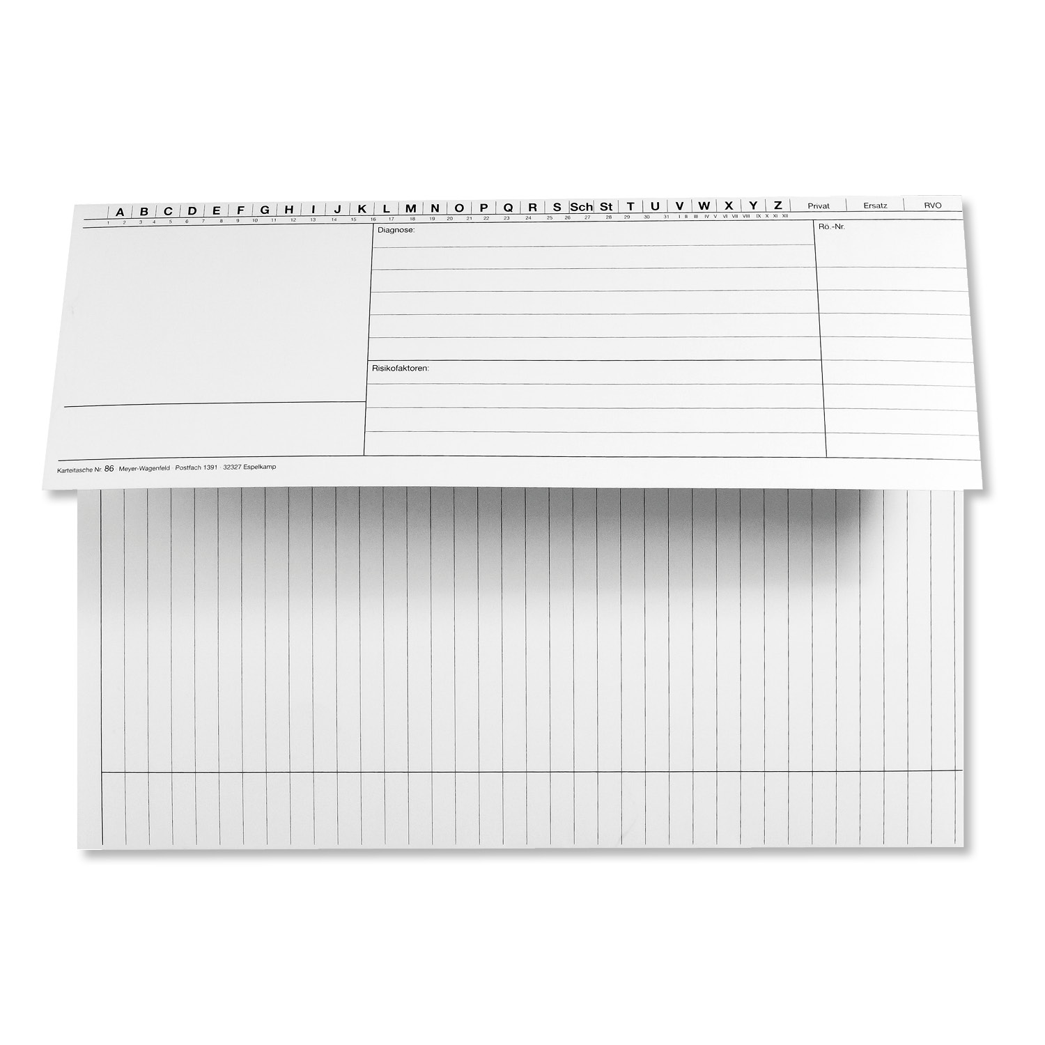 Diese Karteimappen bestehen aus festem Karton, der stabiler ist als die herkömmlichen Karteikarten. Das erhöht die Langlebigkeit Ihrer Patientenkarteikarten.