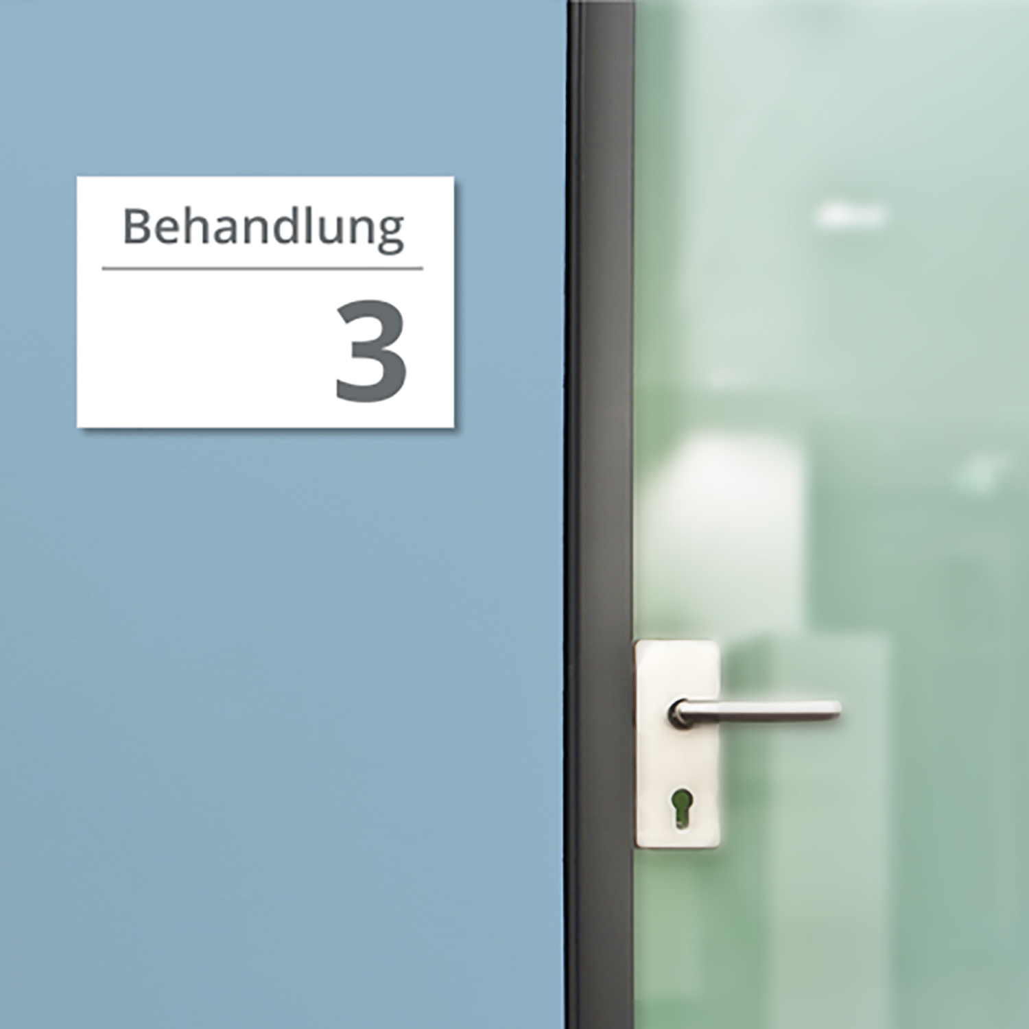 Auch Schilder innerhalb Ihrer Praxisräume helfen Ihren Patienten bei der Orientierung und gehören somit zur Praxisausstattung. Sie können mit Schildern Ihren Wartebereich, Ihre Behandlungszimmer, die Toiletten oder den Mitarbeiterbereich kennzeichnen. Auch Hinweise zur Hygiene oder zu einem gewünschten Diskretionsabstand sind für Ihre Patienten sowie für Ihr Praxisteam eine große Hilfe.