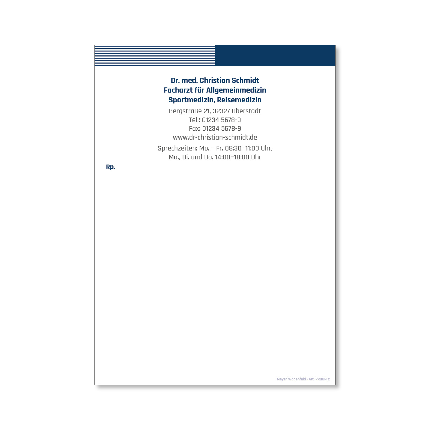 Das Privatrezept lässt sich einfach beschriften und mit allen handelsüblichen Druckern bedrucken. Es bietet ausreichend Platz für Ihren Praxiseindruck sowie für alle relevanten Informationen zur Verschreibung des Arzneimittels oder der Behandlung.