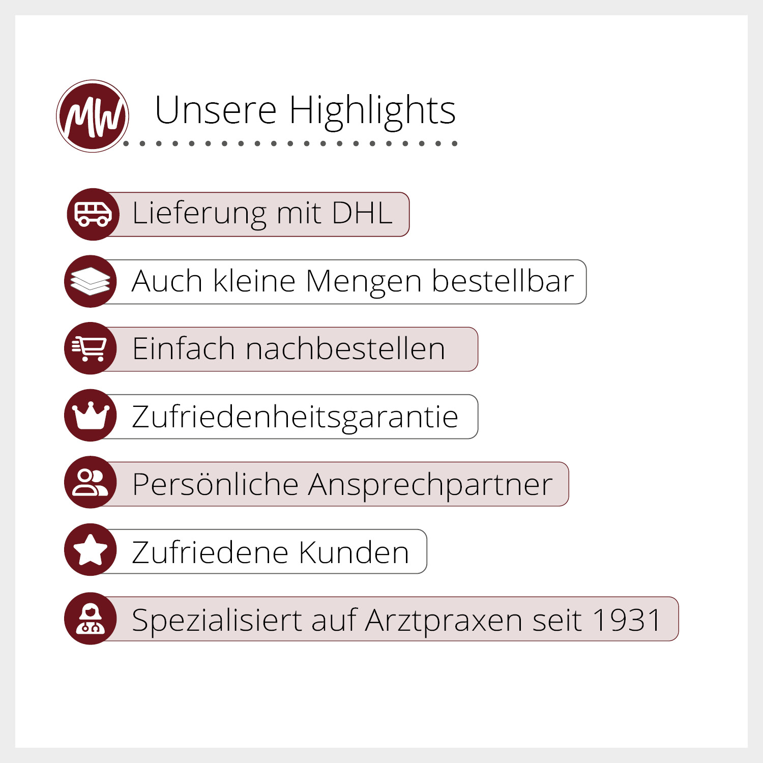 Mithilfe des selbstdruchschreibenden Papiers erhalten Sie eine Ausführung der Arztrechnung/Quittung für Ihre Patienten sowie eine Kopie für Ihre Unterlagen. Die Arztrechnungen/Quittungen sind zu je 50 Satz geblockt und oben an der langen Seite verleimt. Deshalb lassen sich diese Blöcke auch unterwegs gut nutzen.