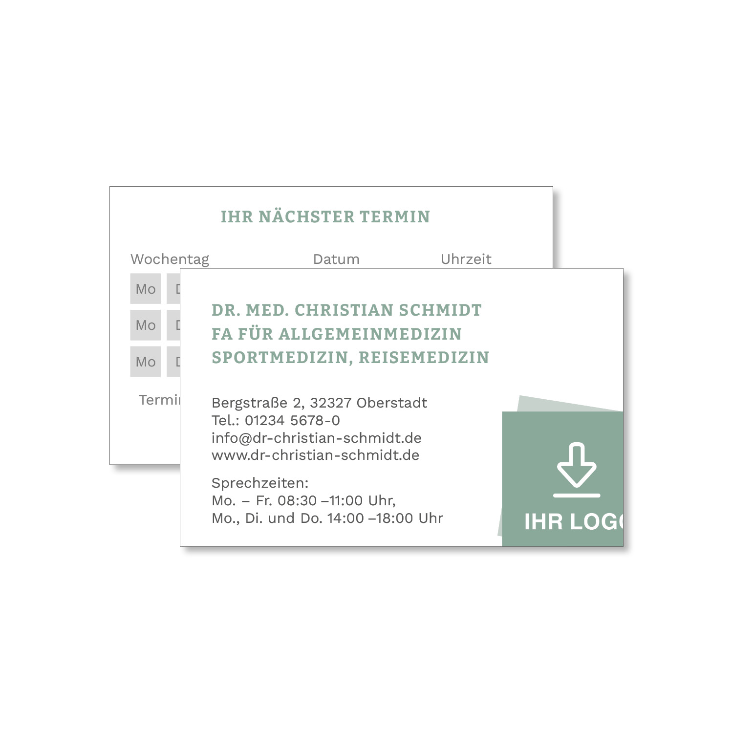 Die Terminkarten eignen sich sowohl für Arztpraxen aller Fachrichtungen als auch für Heilpraktiker, Tierärzte, Physiotherapeuten und Zahnärzte.