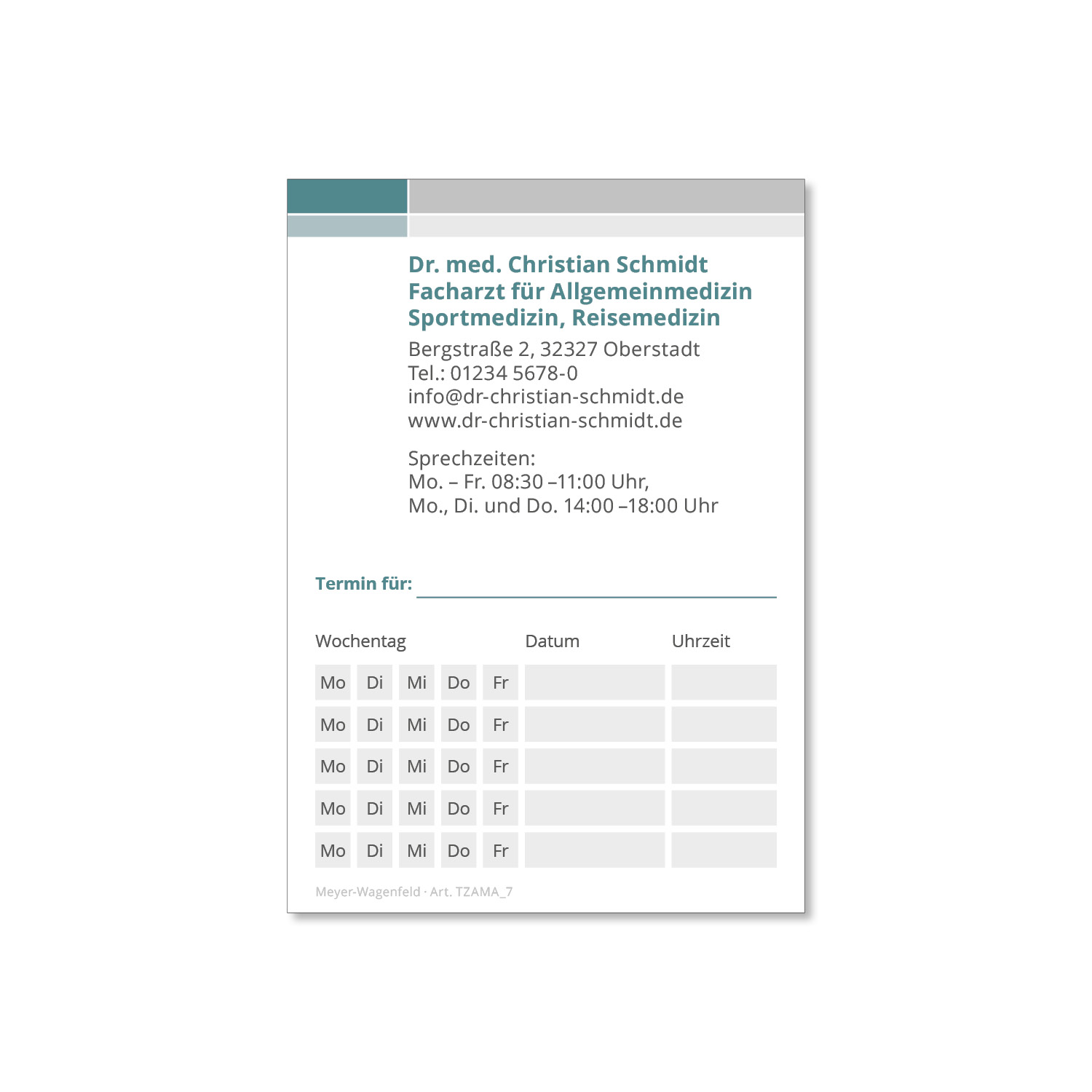 Die Terminzettel eignen sich sowohl für Arztpraxen aller Fachrichtungen als auch für Heilpraktiker, Tierärzte, Physiotherapeuten und Zahnärzte.