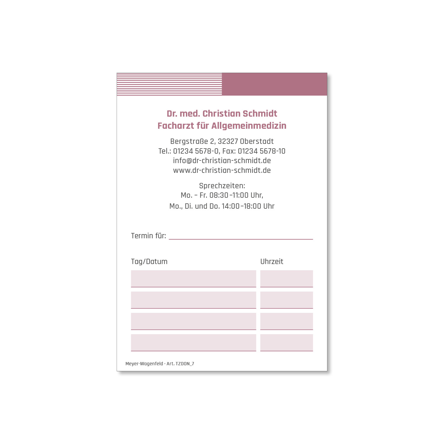 Die Terminzettel eignen sich sowohl für Arztpraxen aller Fachrichtungen als auch für Heilpraktiker, Tierärzte, Physiotherapeuten und Zahnärzte.