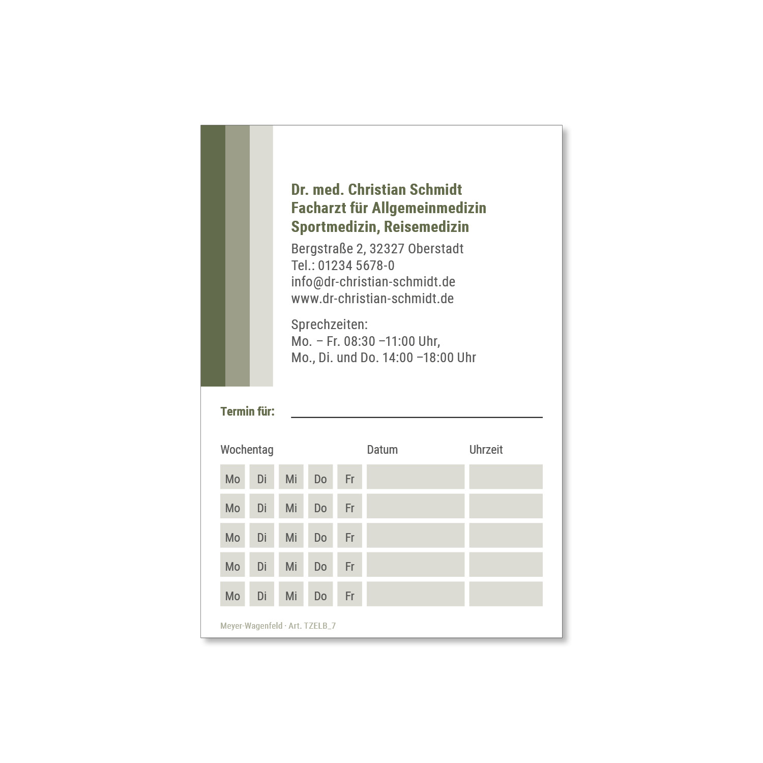 Die Terminzettel eignen sich sowohl für Arztpraxen aller Fachrichtungen als auch für Heilpraktiker, Tierärzte, Physiotherapeuten und Zahnärzte.