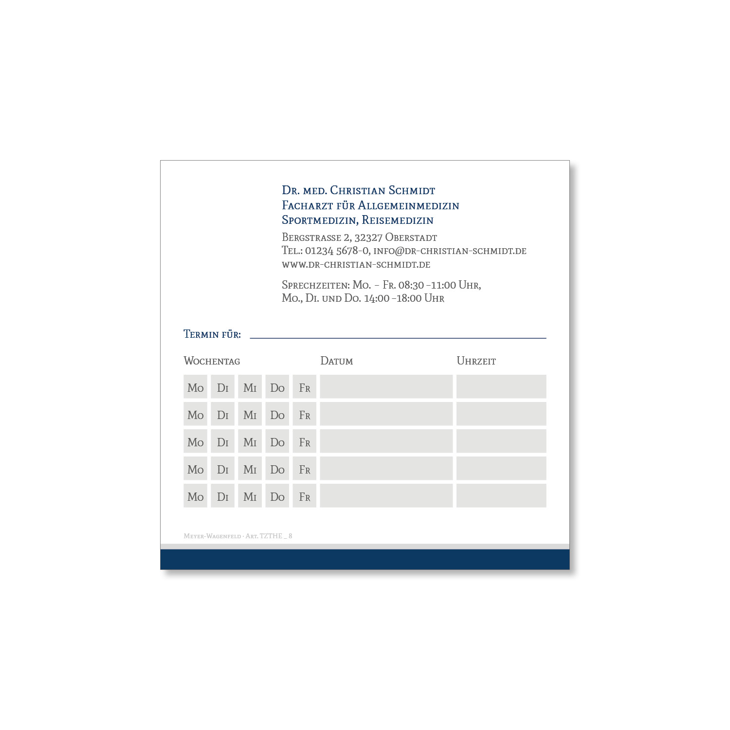Der quadratische Terminzettel lässt sich einfach beschriften und bietet ausreichend Platz für Ihre Kontaktdaten und Ihre Sprechzeiten. Zudem können Sie mehrere Termine eintragen.