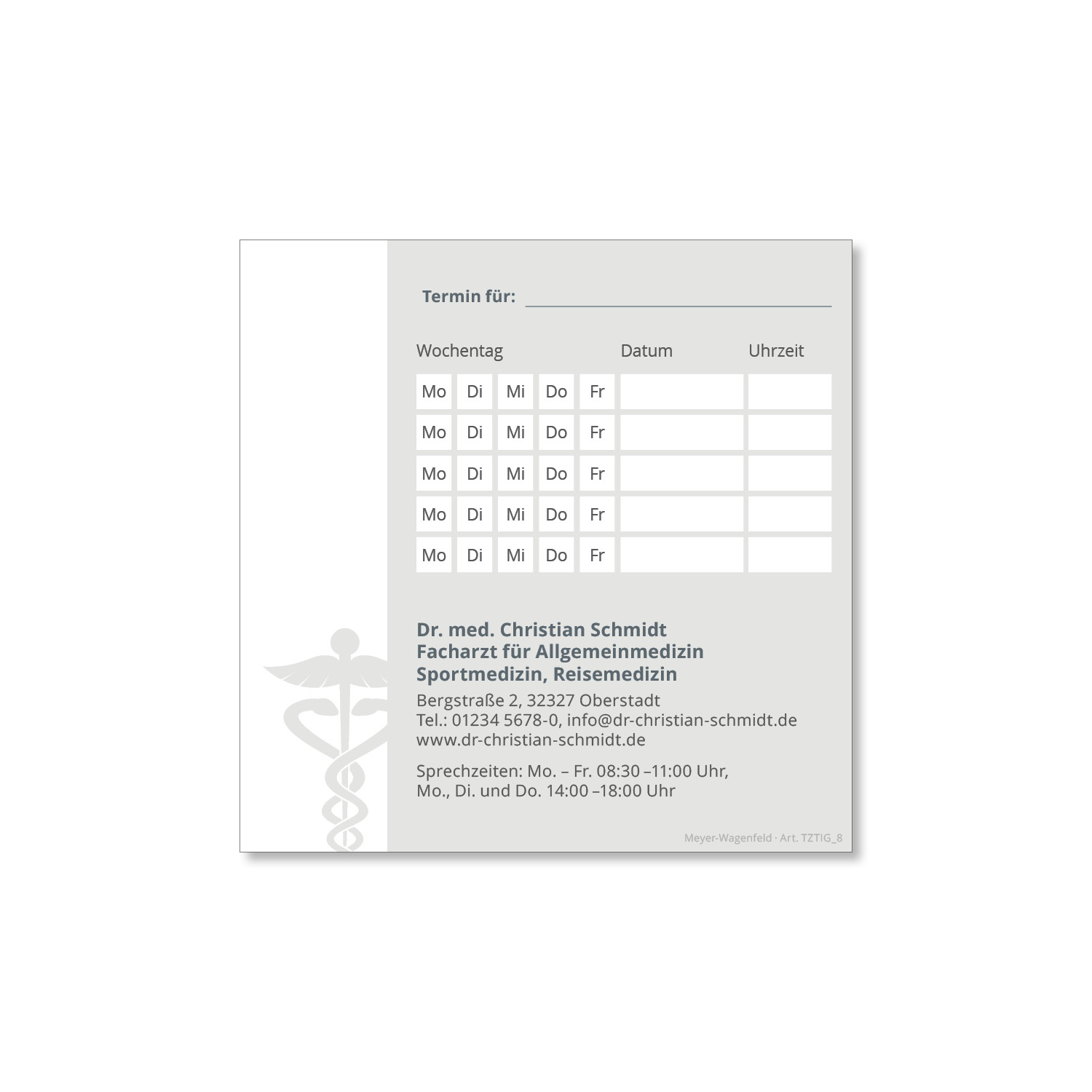 Die Terminzettel eignen sich sowohl für Arztpraxen aller Fachrichtungen als auch für Heilpraktiker, Tierärzte, Physiotherapeuten und Zahnärzte.