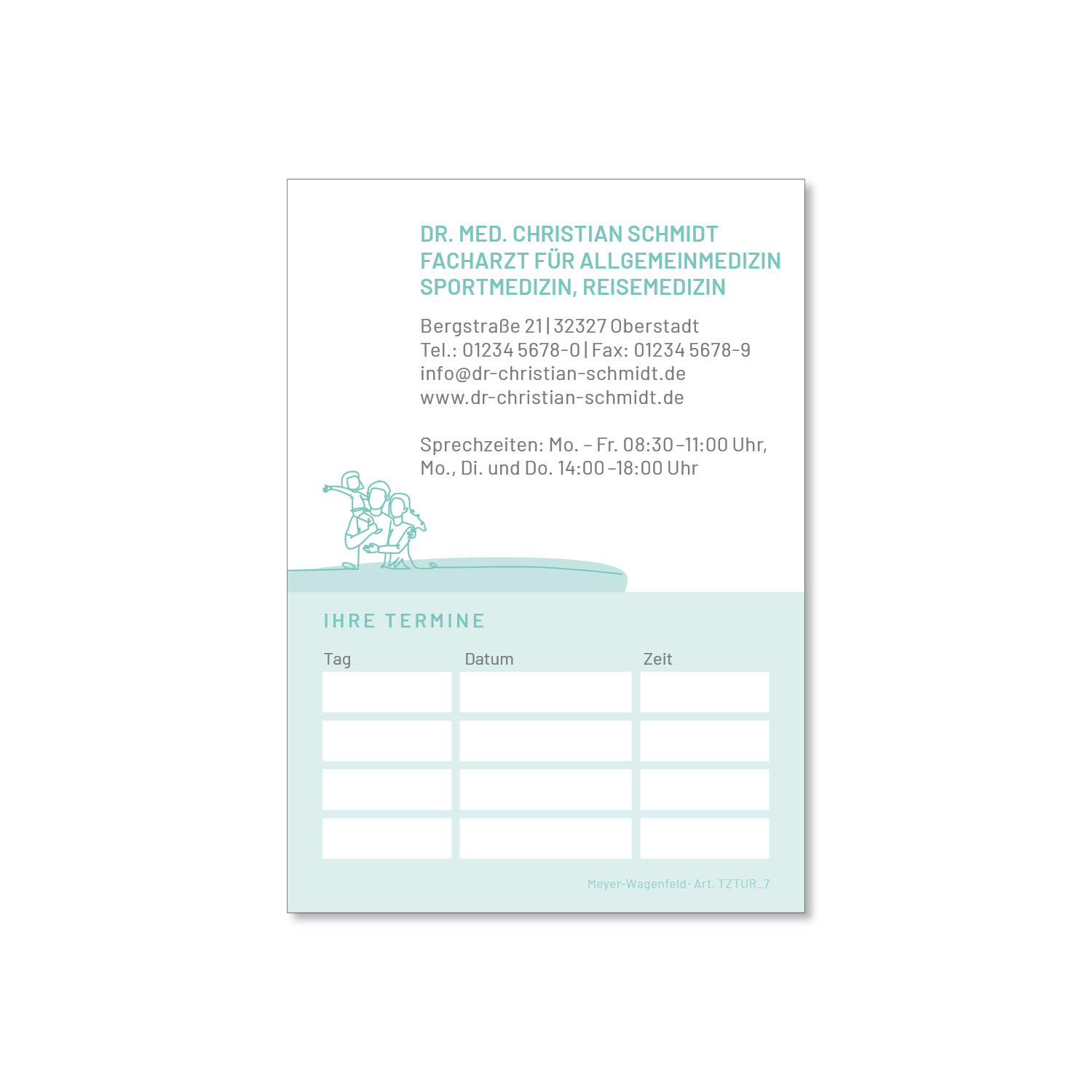 Präsentieren Sie Ihre Praxis professionell mit dem Terminzettel im handlichen DIN A7-Format. Der Terminzettel bietet Platz für die Eintragung von mehreren Terminen. Auch Ihre Kontaktdaten und Sprechzeiten lassen sich auf diesem kompakten Format hervorragend abbilden.