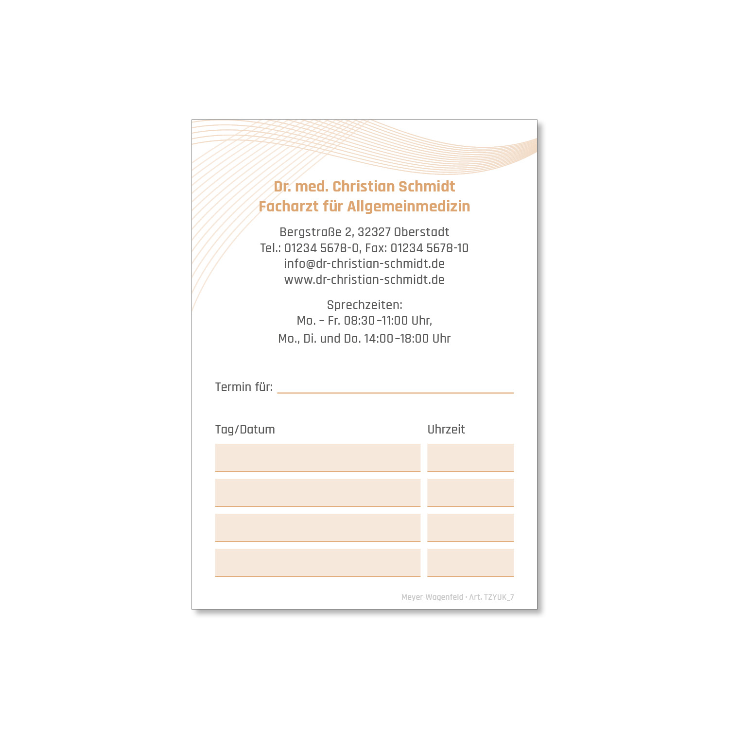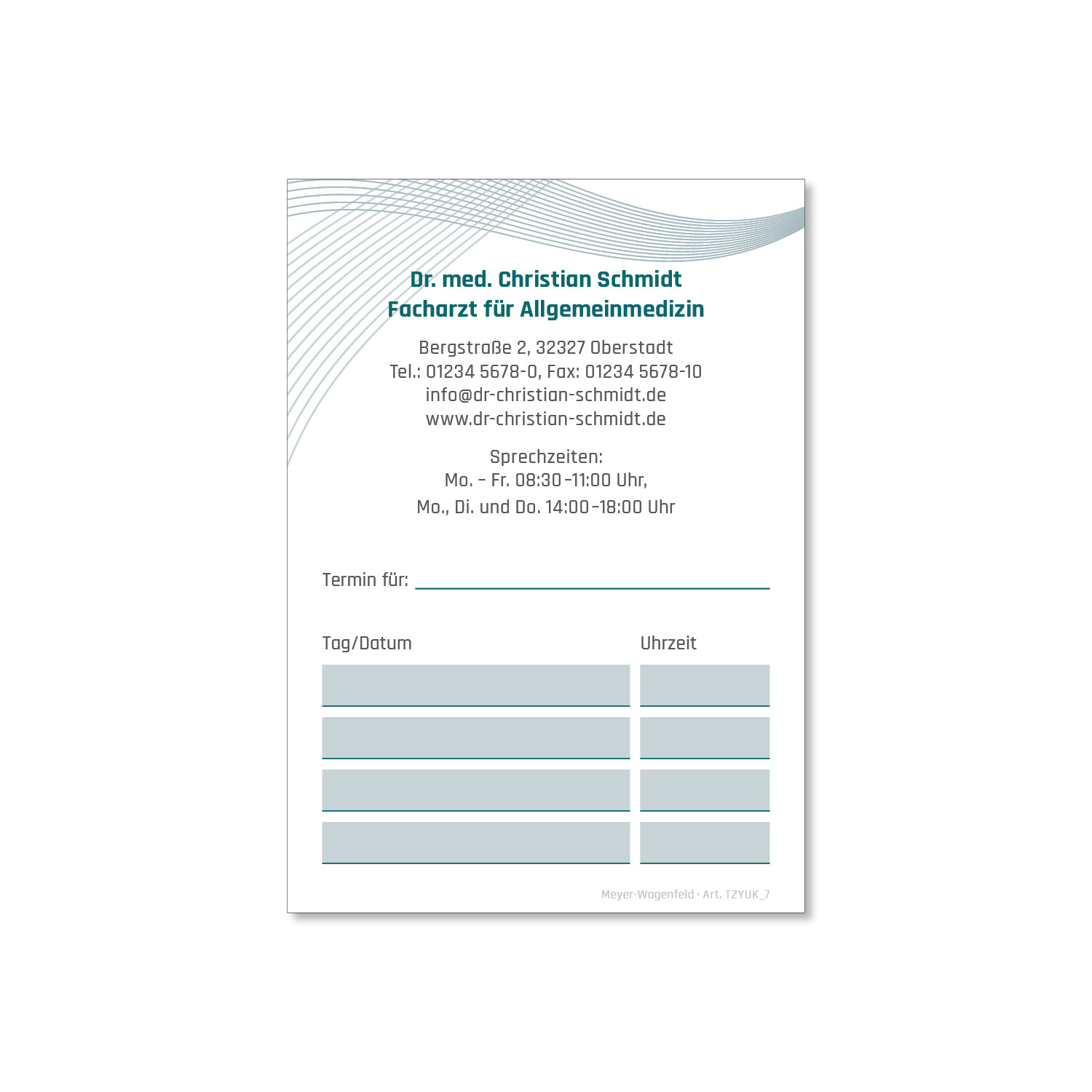 Die Terminzettel eignen sich sowohl für Arztpraxen aller Fachrichtungen als auch für Heilpraktiker, Tierärzte, Physiotherapeuten und Zahnärzte.