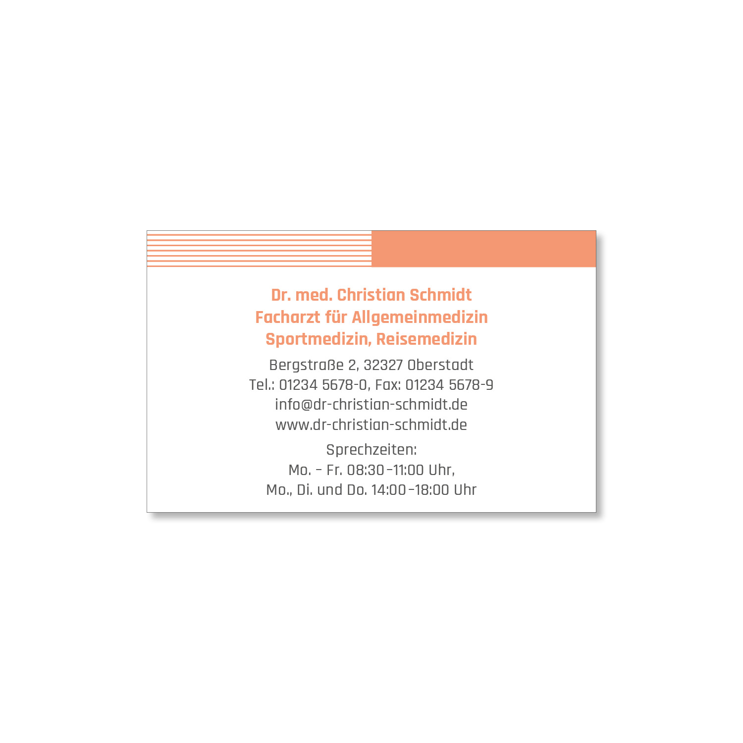 Eine individuelle Visitenkarte vermittelt einen professionellen Eindruck Ihrer Praxis. Sie dient zudem als Marketinginstrument und stärkt die Bindung zu Ihren Patienten. Mit einer Visitenkarte können Ihre Patienten Ihre Praxis einfacher weiterempfehlen oder Termine mit Ihnen vereinbaren.