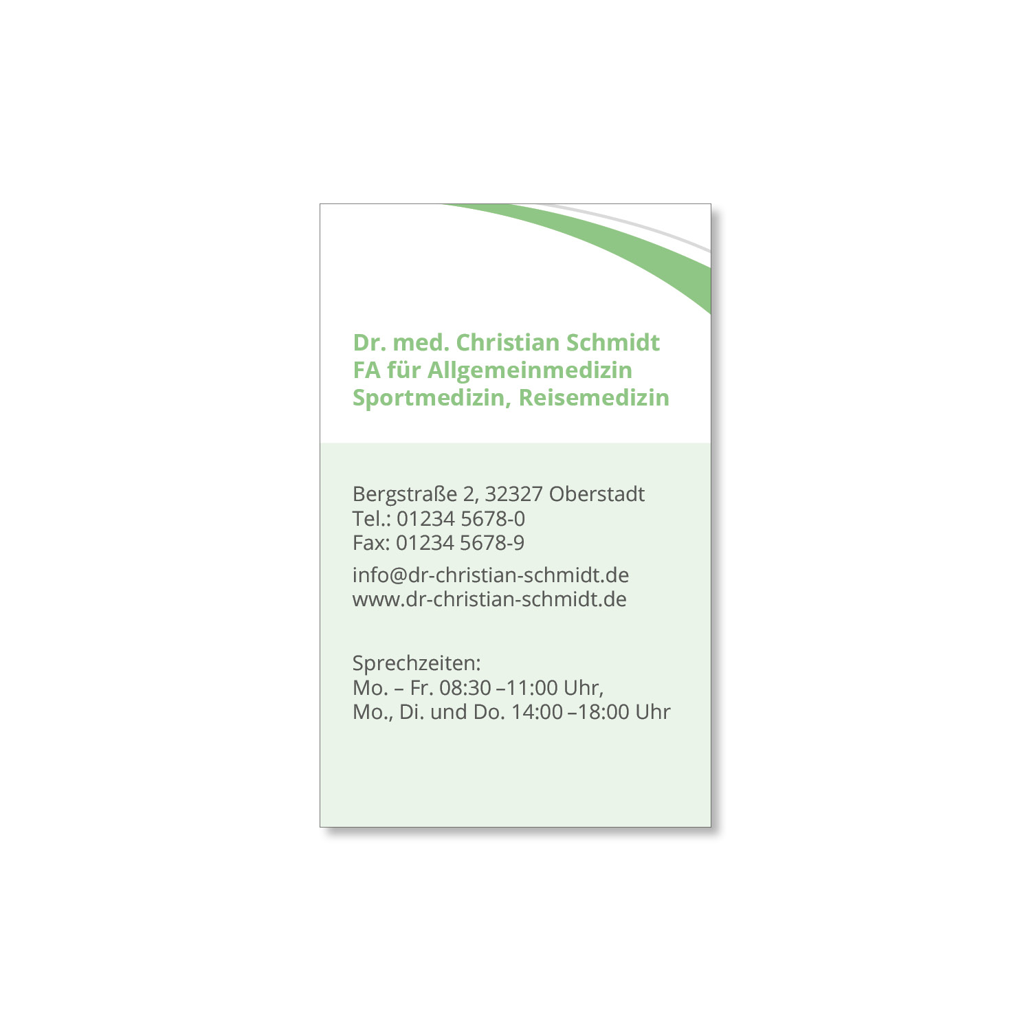 Eine individuelle Visitenkarte vermittelt einen professionellen Eindruck Ihrer Praxis. Sie dient zudem als Marketinginstrument und stärkt die Bindung zu Ihren Patienten. Mit einer Visitenkarte können Ihre Patienten Ihre Praxis einfacher weiterempfehlen oder Termine mit Ihnen vereinbaren.
