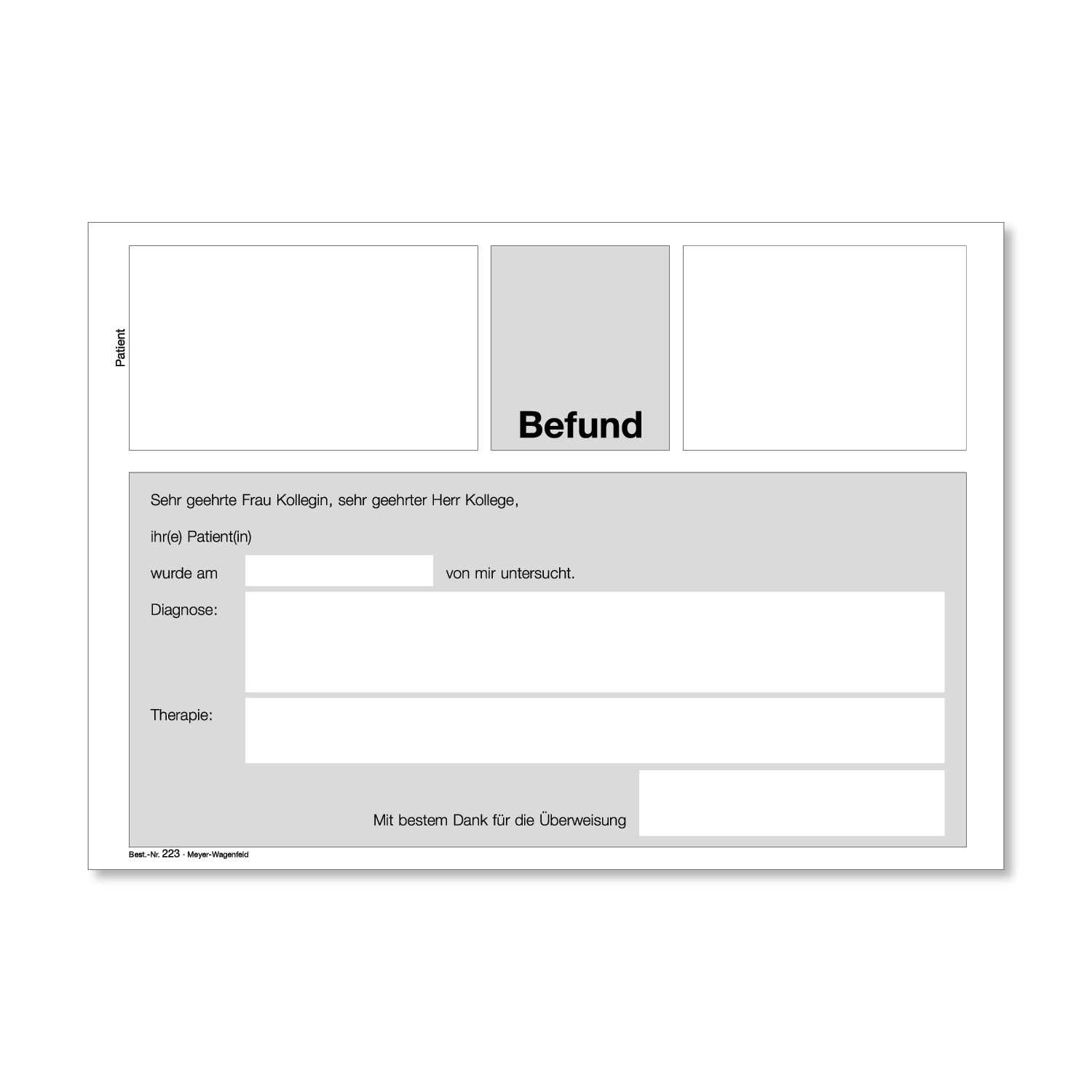 Dieses Formular bietet aufgrund des DIN A5-Formats viel mehr Platz für die Dokumentation der Diagnose und die empfohlene Therapie des Patienten.